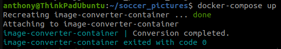 echo "Image conversions completed."But wait, I don't want to install these libraries on my pristine laptop. Let's get Docker involved. In the following Dockerfile we'll take ubuntu as a base and install our dependencies.